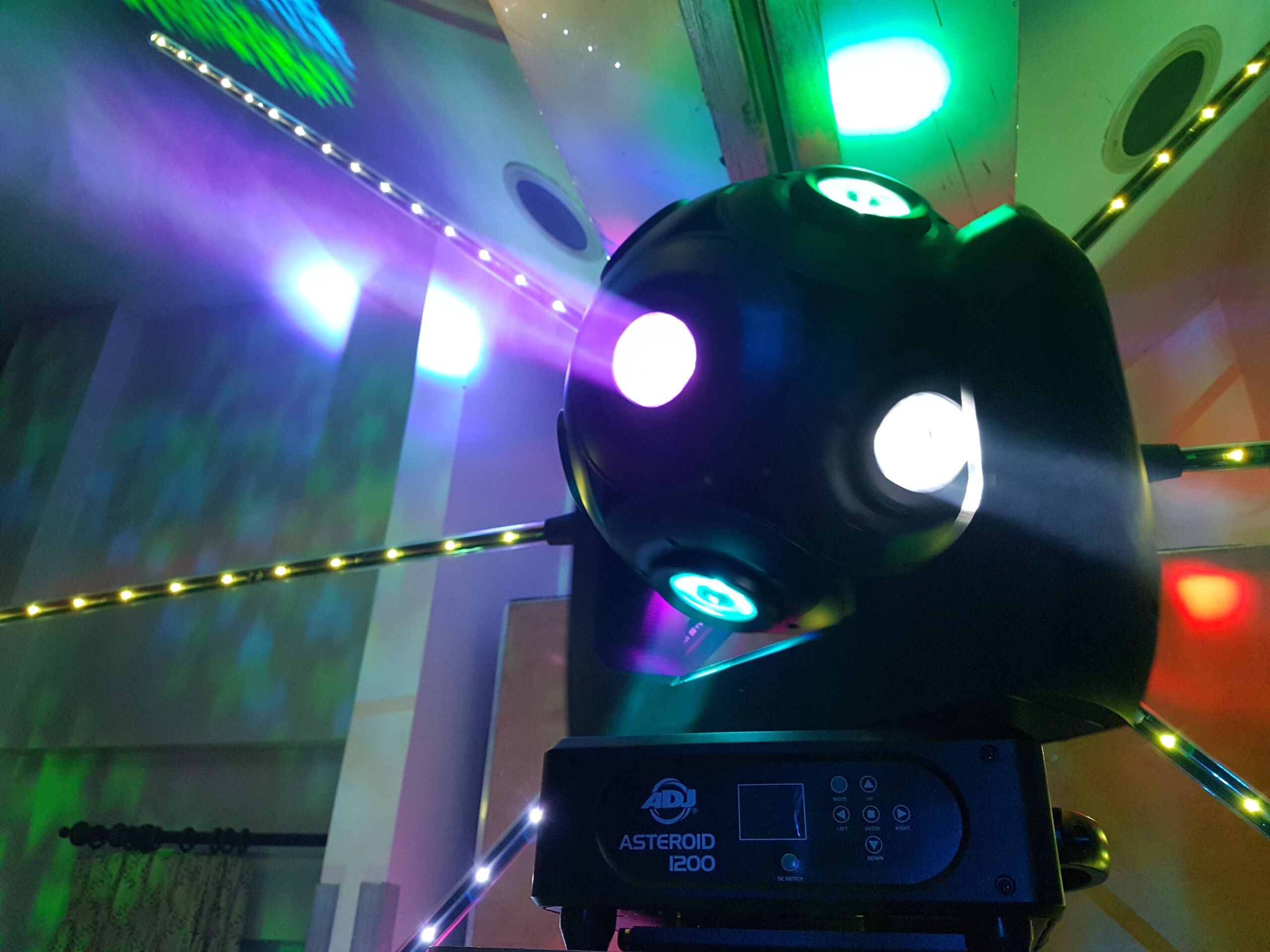 All our lighting is DMX controlled which simply means we are able to program the whole light show to your event. Our uplighting is wireless operated. That means no ugly wires to get in the way and a more professional neater appearance.